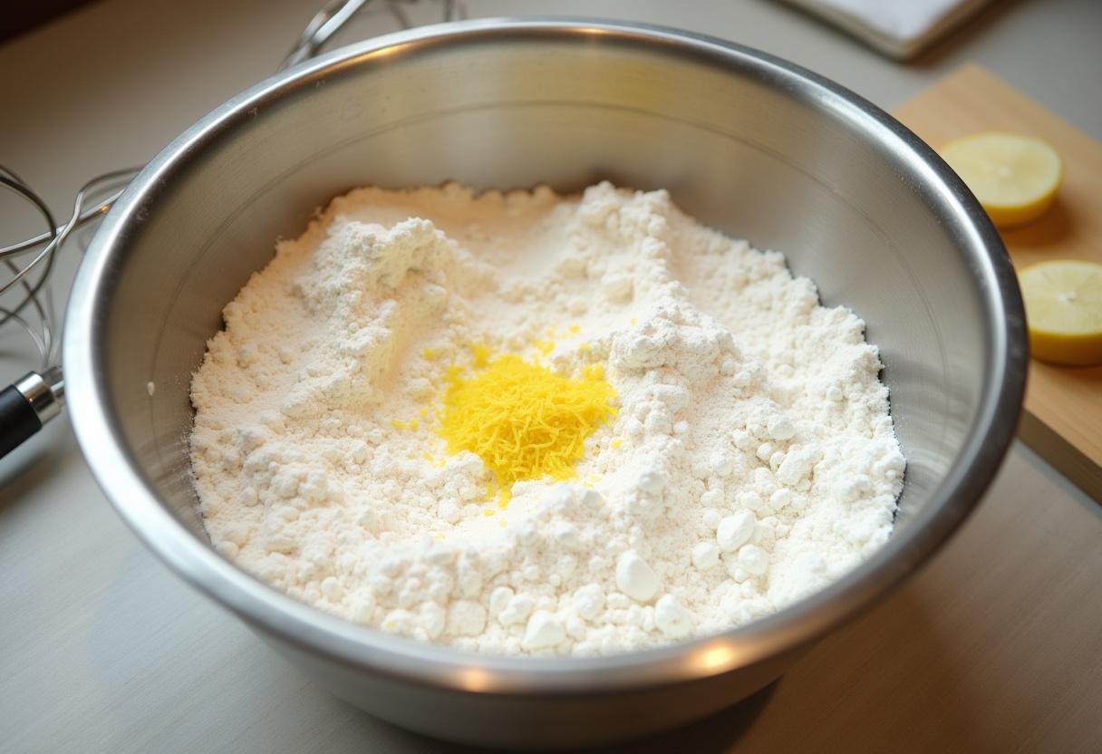 Añade gradualmente los ingredientes secos a los ingredientes húmedos, mezclando hasta que estén justo combinados. Ten cuidado de no mezclar en exceso, ya que esto puede resultar en un bizcocho duro. Asegúrate de que no haya grumos, pero evita remover en exceso para mantener la textura aireada esencial para un bizcocho de limón esponjoso. Incorpora suavemente los ingredientes hasta que la masa sea suave. Si buscas una opción rápida para el almuerzo, explora nuestras ideas para bocadillos.