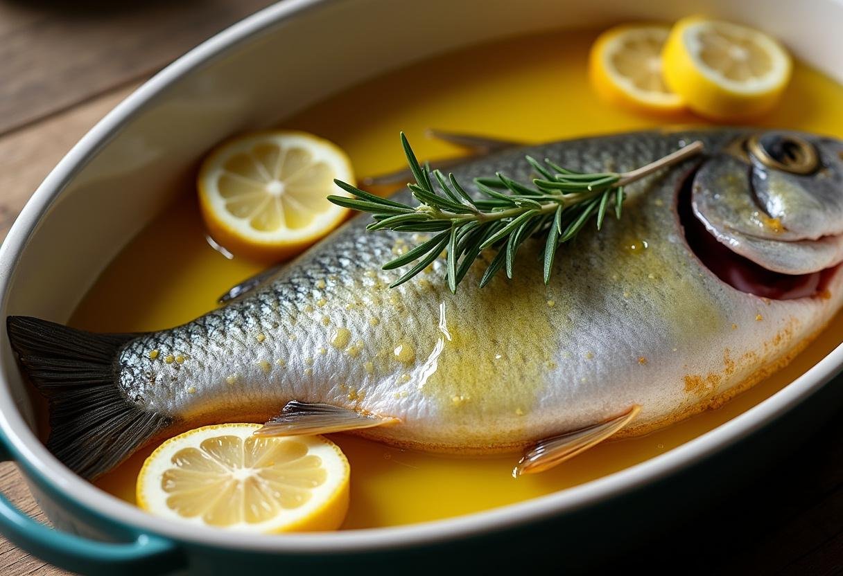 Ahora viene la parte divertida: ¡aromatizar la dorada! Exprime el jugo de medio limón sobre el pescado, asegurándote de que se impregne bien por todos los lados. El ácido del limón no solo realzará el sabor de la dorada, sino que también ayudará a mantener la carne jugosa y tierna. A continuación, coloca unas ramitas de romero fresco tanto dentro de la cavidad del pescado como sobre él. El romero aportará un aroma delicioso y un sabor ligeramente amaderado que complementará a la perfección el sabor del pescado. Si lo prefieres, también puedes utilizar otras hierbas aromáticas como tomillo, orégano o incluso unas hojas de laurel. Para intensificar aún más el sabor, puedes colocar unas rodajas finas de limón tanto dentro como sobre el pescado. No te olvides de rociar generosamente la dorada con un buen chorro de aceite de oliva virgen extra, que le dará un toque de jugosidad y un brillo dorado irresistible. Finalmente, sazona con sal marina y pimienta negra recién molida al gusto, asegurándote de que quede bien distribuido por toda la superficie del pescado. Si te apetece algo ligero para empezar, prueba nuestra ensalada de pasta y atún, ¡un clásico infalible!