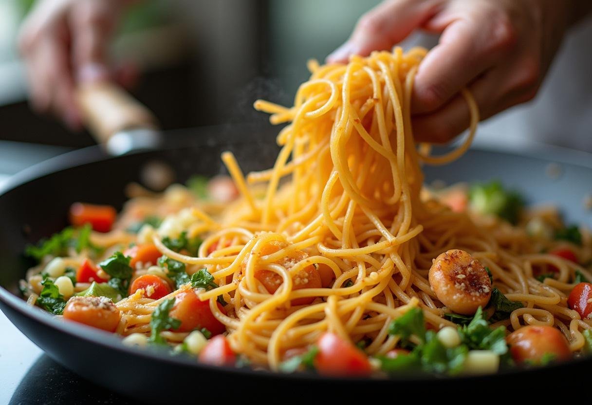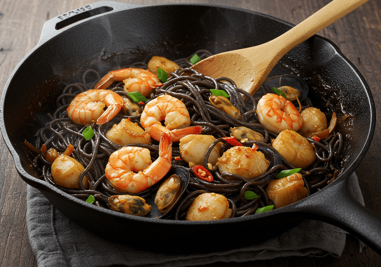 Paso 2: Adición de los Fideos y la Tinta de Calamar
