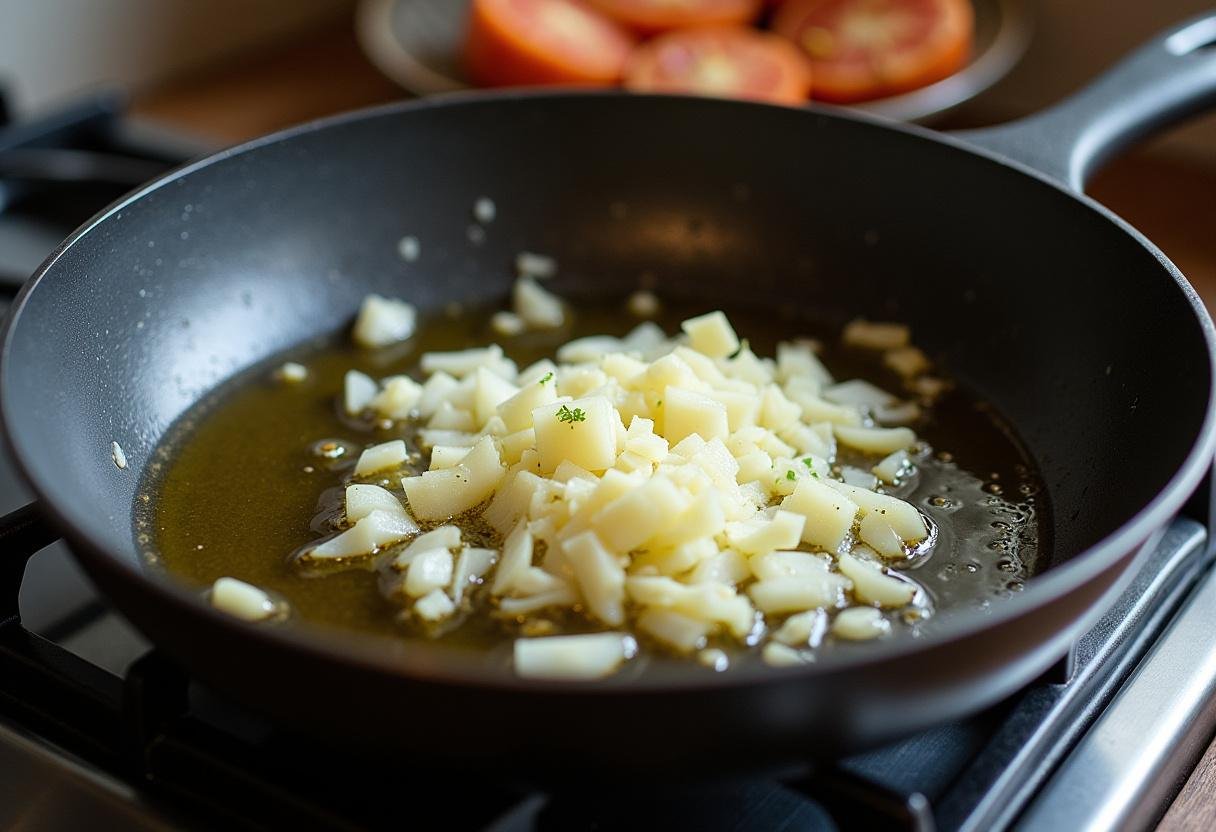 - En una sartén, calienta el aceite de oliva a fuego medio. Agrega la cebolla picada y el ajo, sofriendo hasta que estén dorados y fragantes.