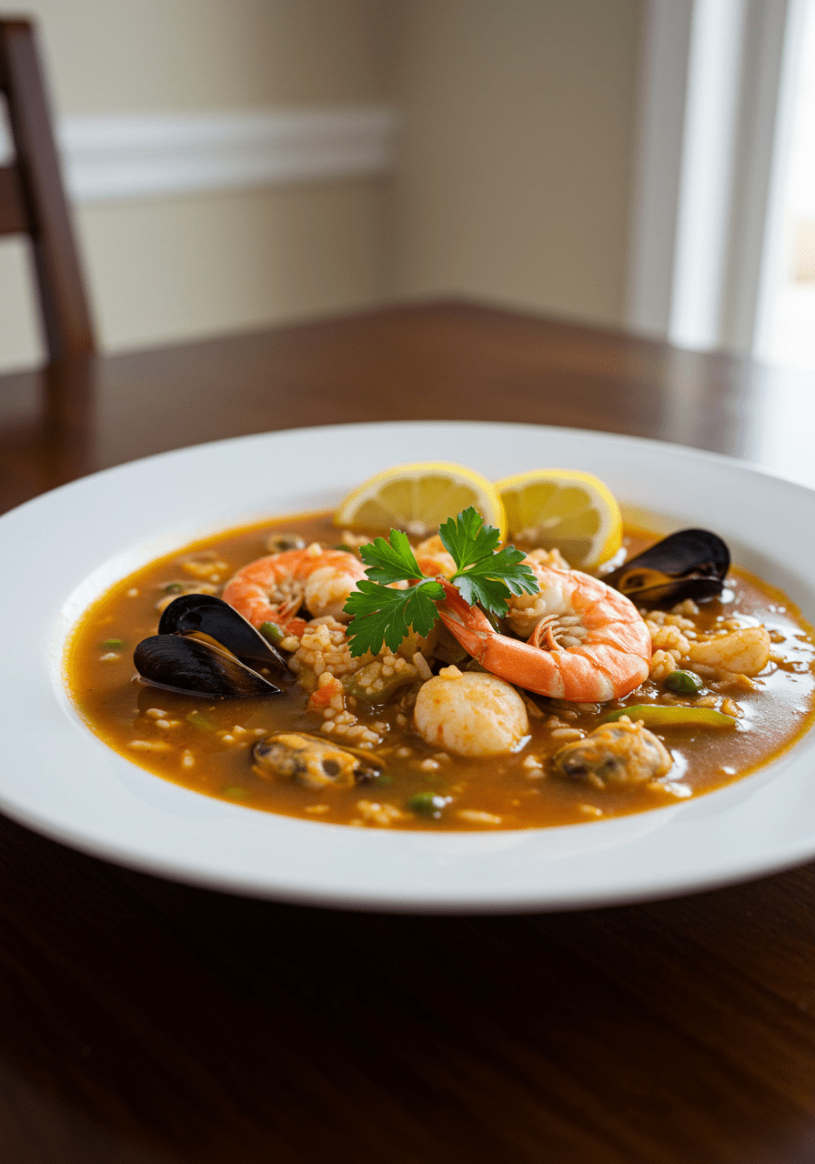 Descubre la cálida y reconfortante sopa de marisco con arroz, una experiencia culinaria que combina los mariscos más frescos con arroz perfectamente cocido en un caldo aromático y rico.